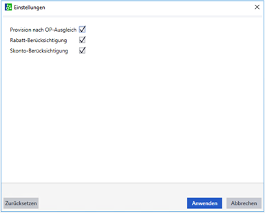- Ob Rabatte bei der Provisionsberechnung berücksichtigt werden sollen (Ja) oder nicht (Nein).